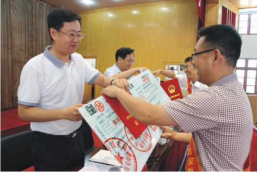 相關領導為獲得我縣科學技術獎的企業(yè)頒發(fā)了證書。集團喜獲沂水縣科學技術特別貢獻一等獎,侯市長為我們頒發(fā)了相關證書。